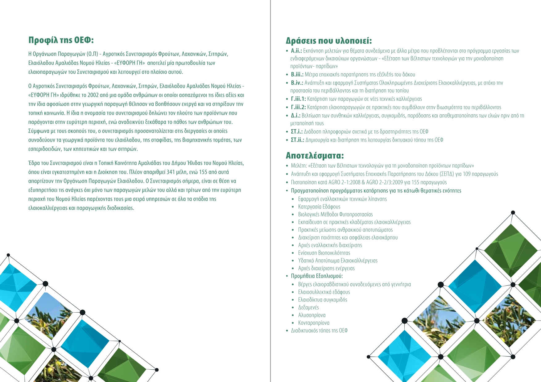 - Τομέας (ΣΤ): Διάδοση πληροφοριών σχετικά με τα μέτρα που λαμβάνουν οι δικαιούχες οργανώσεις για τη βελτίωση της ποιότητας του ελαιολάδου και των επιτραπέζιων ελιών.